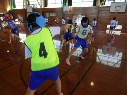 富山県スポーツチャンバラ協会から講師をお招きし、スポーツチャンバラを体験しました。相手より先に剣を当てると勝ちというルールを教わり、剣の振り方や避け方を練習した後、1対1の試合をしました。また、最後には2つのチームに分かれてチーム戦をし、作戦を立てながら試合を楽しんでいました。「叩かれたら痛いと思っていたけれど、痛くなくて安全に楽しめた」「相手と駆け引きすることが楽しかった」と感想を伝えていた子供たちでした。