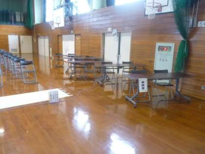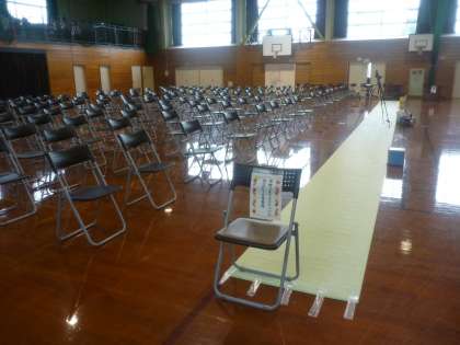 二番目の写真は、体育館グラウンド側にある来賓席で、学校運営協議会委員の方々の席です。