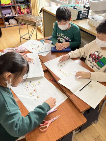 国語科では、「すがたをかえる大豆」という説明文を読んでいます。本文を読む前に、どのような順序で食品の例が挙げられているのかを予想しました。「枝豆は、大豆になる前にできるから初めに出てくるのではないかな」等、総合で調べた知識をもとに友達と考える様子が見られました。