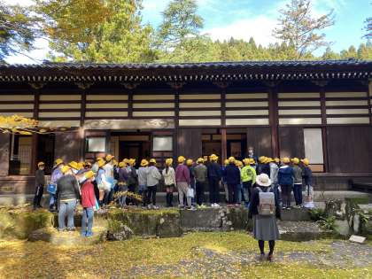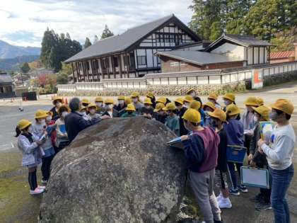 今日の校外学習では、まず立山博物館に行きました。博物館の資料を実際に見たり、学芸員の方からくわしい説明を聞いたりして、立山の歴史にふれることができました。