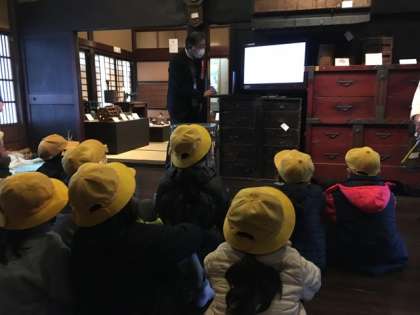 3年生は、民俗民芸村に来ています。昔の暮らしの様子や富山の売薬について学んでいます。空襲の話を聞いた時には、ちいちゃんのかげおくりみたいと、子供たちは学習とつなげて考えていました。