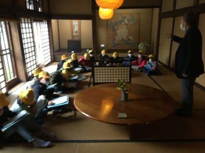 3年生は、民俗民芸村に来ています。昔の暮らしの様子や富山の売薬について学んでいます。空襲の話を聞いた時には、ちいちゃんのかげおくりみたいと、子供たちは学習とつなげて考えていました。