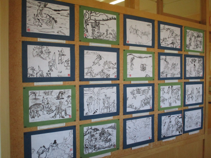 学年によって、書初の練習作品や図工の作品も掲示してありますのでご覧ください。