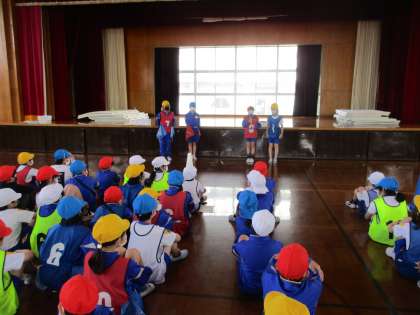 学年集会のリーダーが集会の終わりで、「これからもみんなで協力できる“楽しい”4年生でいましょう」と振り返りの言葉を述べました。集会をやり遂げ、子供たちは達成感を味わっていました。