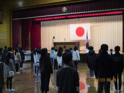 保護者や地域の皆様には、令和4年中、本校の教育活動にご理解とご支援を賜り、ありがとうございました。上の写真は2学期終業式で、久しぶりに5、6年生が体育館に整列し、校歌を歌っている様子です。新型コロナウィルスに加え、季節性のインフルエンザも流行し始めていますが、引き続き、感染対策を徹底しながら、3学期も活動の充実を図っていきたいと考えております。令和5年もよろしくお願いいたします。皆様、よいお年をお迎えください。なお学校は、12月29日(木)〜1月3日(月)まで閉庁となります。よろしくお願いいたします。