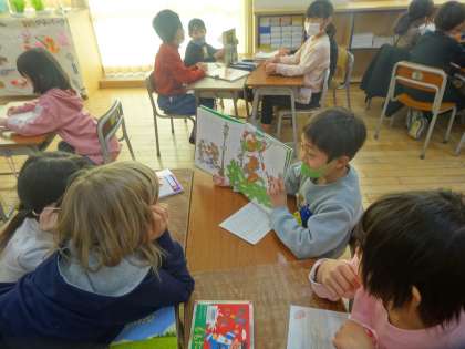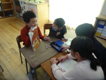 国語科「ききたいな、ともだちのはなし」の学習で、自分のおすすめの本を紹介し、友達に質問したり感想を伝えたりしました。友達の話を聞き、「一番面白かったのはどこですか」「ぼくも読んだことがあるけど、たしかに面白かったです」など友達に伝えることができました。