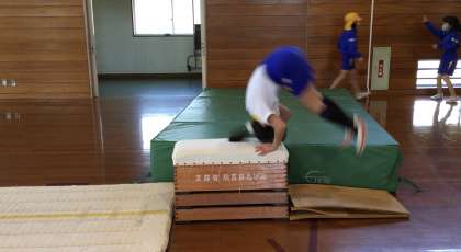 体育科の学習で跳び箱運動に取り組んでいます。「抱え込み跳び」や「首跳ね跳び」等、学習発表会より、レベルアップした技に挑戦しています。友達とコツを伝え合いながら、進んで運動に取り組んでいます。
