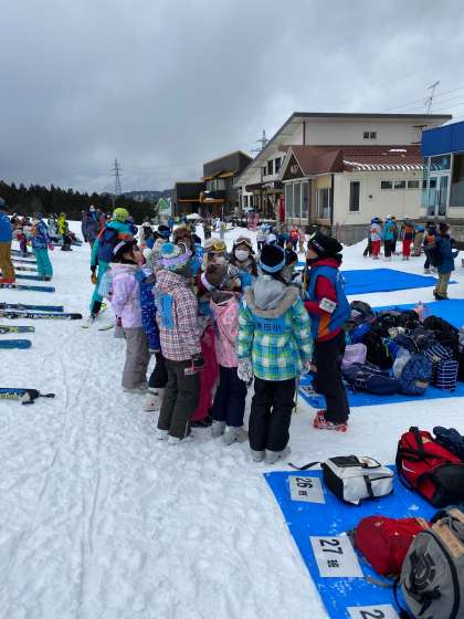 各学年、グループごとに開講式を行い、いよいよスキー学習がスタートしました。