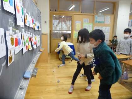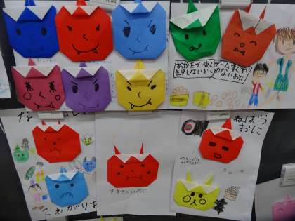 今日は節分の日ということもあり、最後には自分の心の中の鬼を追い払おうと、新聞紙で作った豆で豆まきを行いました。