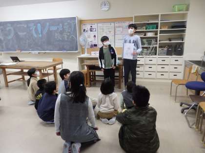 「うまく伝えることができるかな」と最初は緊張していましたが、下級生の反応を見ながら声をかけたり、その場を盛り上げたりする様子が見られ、次第に各教室に笑顔が増えてきました。中には、教室が混んできたら一人で下級生に対応し、丁寧に説明しながら活動を進めている様子も見られ、頼もしく感じられました。