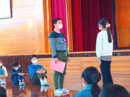 6年生の委員長から5年生の次の委員長へ委員会のファイルが引き継がれました。6年生の思いを聴いたり、自分たちの決意を伝えたりする中で、自分たちが最高学年に近付いていることを感じている子供たちでした。
