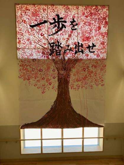 在校生は卒業生からの贈り物をたくさんもらいました。学校をよくしようという「誠実な心」、友達を大切にしようという「思いやりの心」、そして、一歩前に踏み出そうという「前向きな心」などなど、数えきれないほどです。そんな卒業生が卒業を祝う会で贈ってくれたのが、手形の桜です。卒業式の会場でお披露目した後、北館3階から4階にかけての踊り場に掲示しました。ここは、新しい6年生が毎日通るところです。新6年生には、卒業生から贈られた、たくさんの伝統を受け継ぎ、がんばっていこうという思いを新たにしてほしいと願っています。