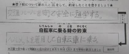 交通安全や自転車乗りについて、各家庭で立てた目標を書いた用紙が集まりました。どの子供の目標からも、自分の課題を意識し、交通安全に気を付けようという気持ちが伝わってきました。