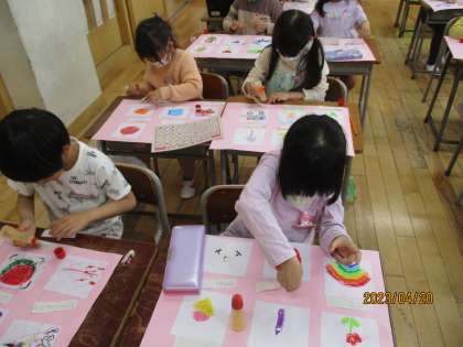 図画工作科の学習では、「ぼく・わたしの好きな○○」をテーマに6枚の絵を描きました。自分の好きな○○を思い浮かべながら、楽しそうに取り組む様子が見られました。6枚の絵に題名をつけて、完成した作品ににっこり笑顔の子供たちでした。