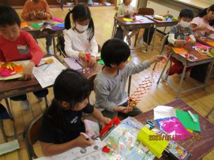 図画工作科の学習では、安全にはさみを使って切り紙をしました。