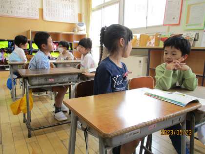 話すこと・聞くことの学習をしました。友達の話を聴くときの大切なことについて、「目と心をつなぐといいよ」「質問するときは、たくさんじゃなくて一つずつ聴こう」等と考えた子供たち。実際に話を聴く姿からも、友達の話を聴くときに大切なことを意識して取り組もうとする様子が見られました。