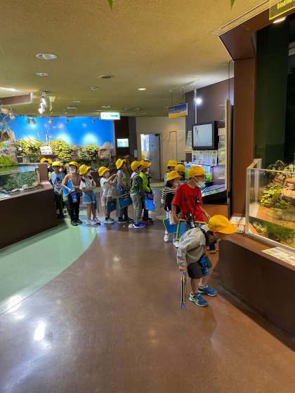 いろいろな魚を見て、みんな大喜びで見学しています。