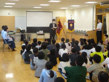 富山市消防署の方々をお招きし、BFCバッジ授与式と防災教室を行いました。子供たちは消防署の方の話を聞き、防災意識を高めていました。これからの学校生活の中でも、できる活動を考えていきたいです。