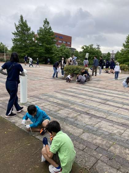 前日の大雨でどうなるかと思いましたが、当日は雨も上がり子供たちは草を抜いたり、落ち葉を拾ったり一生懸命頑張っている姿が見られ、気持ち良い朝を迎えることができました。