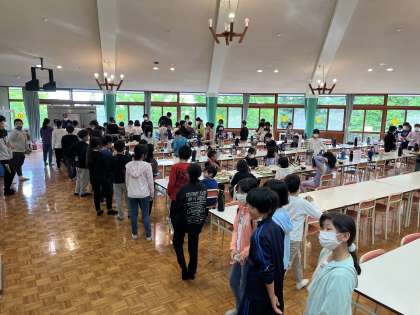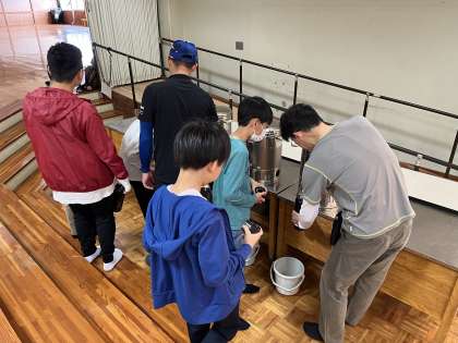 食事リーダーが5分前行動をして、着々と準備を進めています。