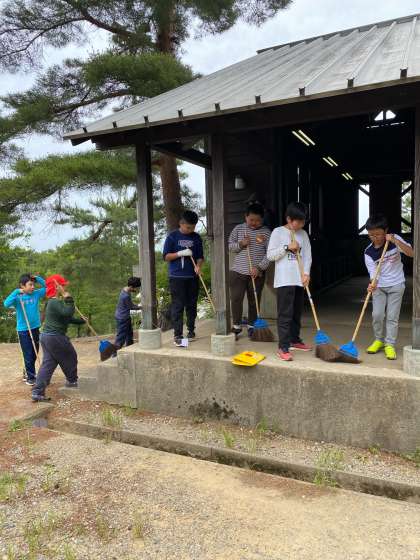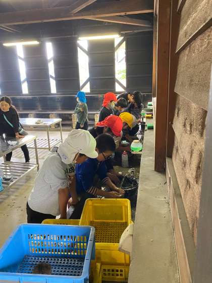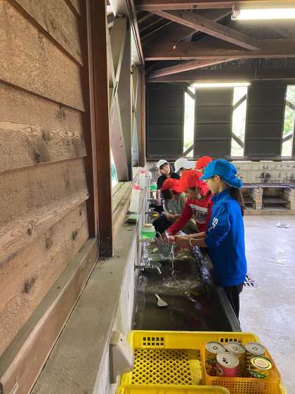 カレーを食べ終わり、みんなで協力して後片付けをしています。