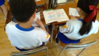 アサガオの成長について詳しい教頭先生に間引きについての話をしていただきました。子供たちは「ぼくのは、もう狭そうだから間引きをするよ。家で大切に育てたいな」「私のはまだ小さいから間引きはしなくてよさそう」等と、自分のアサガオの様子を見て、間引きをするか、しないかを考えていました。