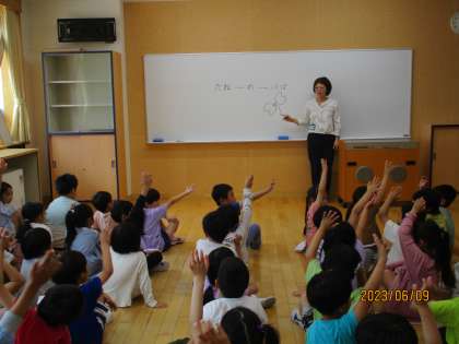 アサガオの成長について詳しい教頭先生に間引きについての話をしていただきました。子供たちは「ぼくのは、もう狭そうだから間引きをするよ。家で大切に育てたいな」「私のはまだ小さいから間引きはしなくてよさそう」等と、自分のアサガオの様子を見て、間引きをするか、しないかを考えていました。
