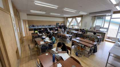 4年生の算数科の学習では、少人数で授業を行っています。自分の課題に集中したり、友達と教え合ったりする姿が見られます。