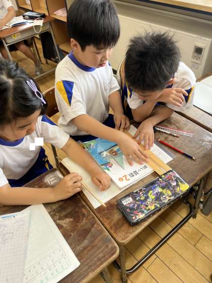 実際に長さを測る活動を通して、楽しみながら長さについての感覚を身に付けていく子供たちでした。