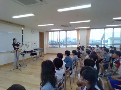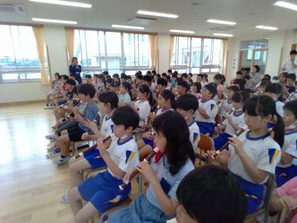 東京リコーダー協会より、講師の先生をお招きしてリコーダー講習会を行いました。子どもたちが小学校で使用するリコーダーはソプラノリコーダーですが、それ以外にもたくさんのリコーダーを見せていただき、それぞれのリコーダーの音色や音域に合わせた子どもたちがよく知っている曲を演奏していただきました。いい音で吹くコツや運指を教わりました。これからの音楽の授業が楽しみになったようです。