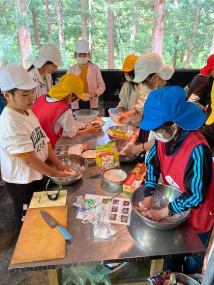 ピザづくりがスタートしました。おいしく出来あがりますように。