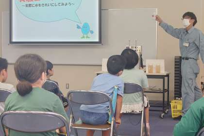 実際に泥水をきれいにする様子を、実験で見せてくださいました。