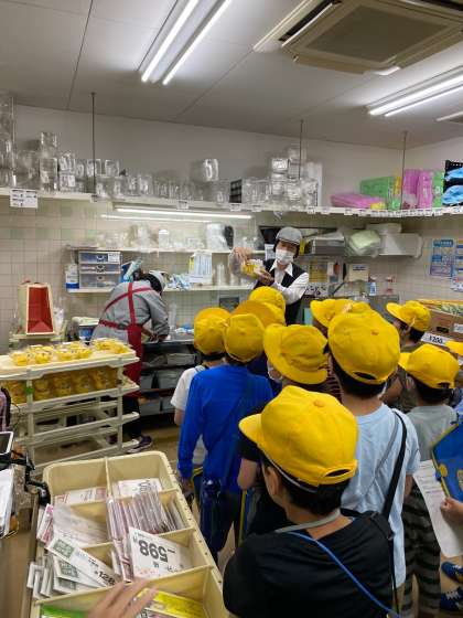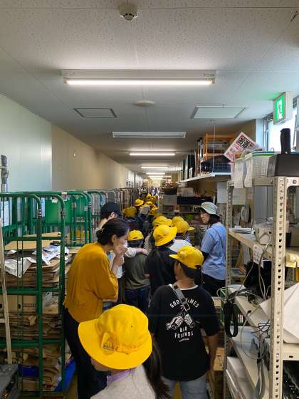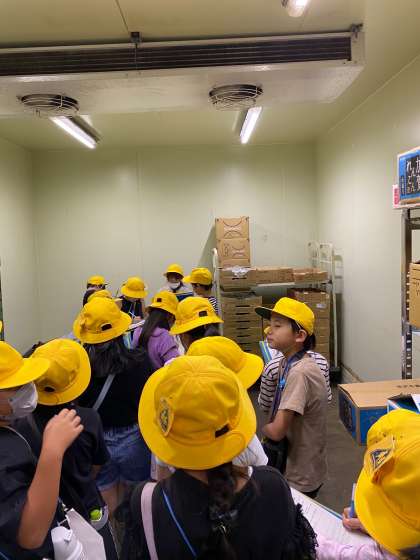 3年生は普段入れないバックヤードに入り、野菜の冷蔵庫や果物をカットして詰める作業をしているところを見学させていただきました。初めて見る場所に、驚いていました。