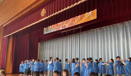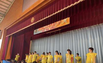 毎日、学習発表会に向けて練習を頑張っている子供たちの様子です。「タンタン」「ルルル」「スコドン」の3つの国に分かれて歌や、合奏に取り組んでいます。