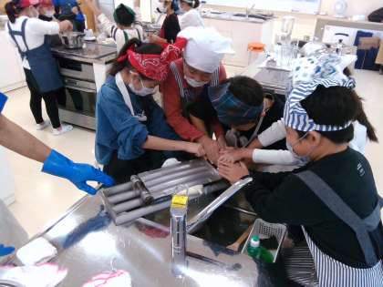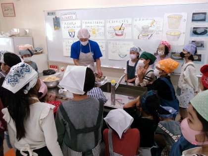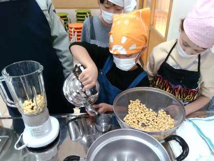 「豆腐」に関する実感・体験学習会を行いました。豆腐がどのようにできるのかを実際につくりながら学びました。自分たちでつくった豆腐を食べたり、違うグループの豆腐を食べ比べたりしながら、「美味しいね」「楽しかったね」とうれしそうに話していました。