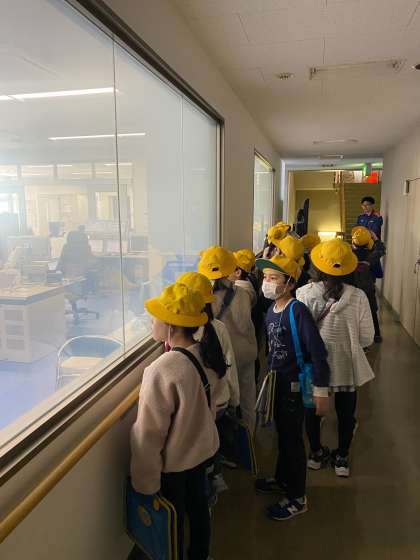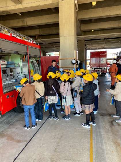 3年生の子供たちは、消防車に積まれている物や人を助けるために扉を切る機械を見せていただいたり、署内に入り通信司令室を見学させていただいたりしました。