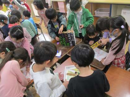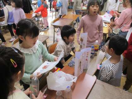 生活科の学習で、秋の物を使ったおもちゃづくりに取り組んできました。今日は、秋のおもちゃパーティーをして、自分がつくったおもちゃで友達に遊んでもらったり、友達のおもちゃで遊んだりしました。