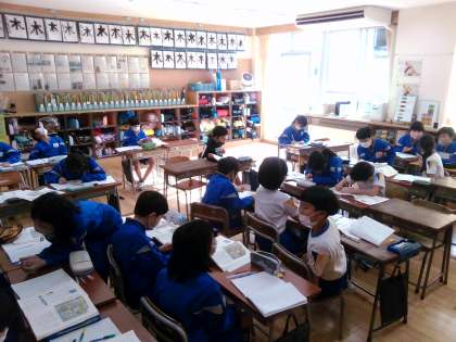 国語科の学習で、物語づくりをしました。読み手を惹きつけられるように、文章構成を工夫したり登場人物の気持ちの変化を場面ごとに考えたりしながら、楽しく学習に取り組みました。