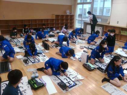 書写の学習で、書初の練習をしました。子供たちは、「とめ」や「はらい」に注意しながら一筆一筆心を込めて練習に取り組んでいました。