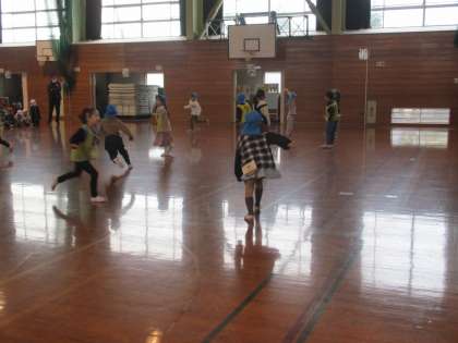 2組主催の「2学期どんどんがんばったね集会」をしました。「宝探し」と「こおりおに」をしました。こおりおにでは、体育館に応援の声が響きました。互いの頑張りを支える子供たちの姿が見られました。