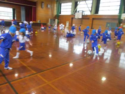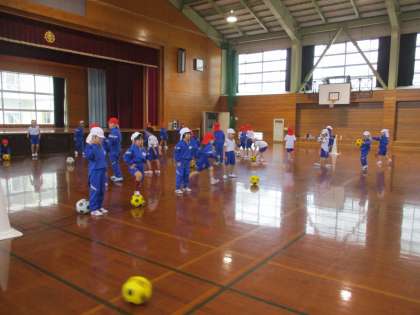 体育科では「ボール蹴りゲーム」の学習をしています。簡単なボール操作に慣れてきました。