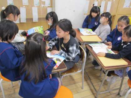 生活科「もうすぐ2年生」の学習で、4月に奥田小学校に入学する予定の幼稚園や保育園の年長さんを迎えて学校紹介をしました。どんなことを伝えたらよいのかなど、子供たち一人一人が一生懸命考えて取り組みました。