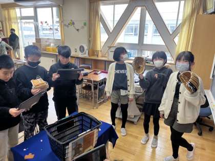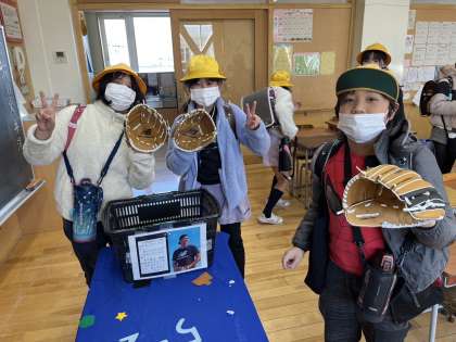先日、子供たちも待ち望んでいた大谷選手からのグローブが届きました。6年生から順に各教室でグローブを見たり触ったりしています。5年生の教室では、子供たちが実際にグローブをはめ、「初めてグローブをはめたけれど、すごく軽い」「ボールが投げやすそう」と感想を伝え合ったり、家族にも見せたいとChromebookで写真撮影をしたりしていました。