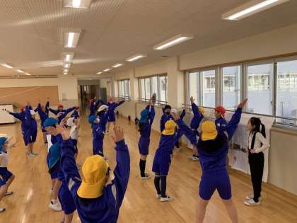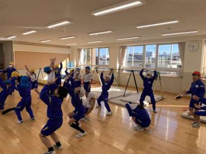 体育科で表現運動を学習しました。子供たちは提示されたテーマからイメージしたことを体全体で表現するため、体を曲げたり、伸ばしたり、捻ったりするなどの動きを楽しみながら学習に取り組みました。