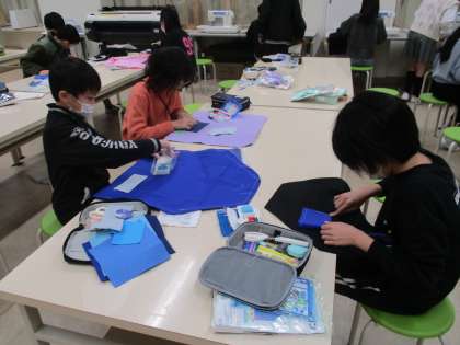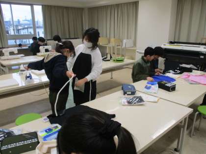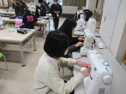 家庭科の学習でエプロンづくりをしています。子供たちは初めてミシンを使ったときは緊張している様子でしたが、学習を重ねるごとに自信をもって活動できるようになっています。6年生から給食当番や調理実習で活用しようと、思い思いのエプロンを完成させています。