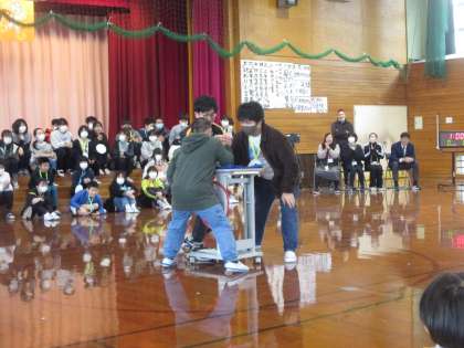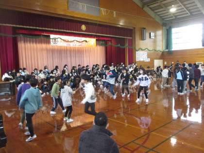 3月6日に6年生の卒業お祝い集会がありました。4年生は6年生と「大声」「腕相撲」「8の字跳び」の3つの対決を行いました。とても楽しい時間を過ごすことができました。