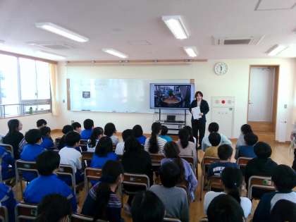 今日は、栄養教諭と給食について学習しました。給食は、調理員さんが長い時間をかけておいしくつくられていることを知り、「日頃から感謝して、給食を残さず食べよう」という思いを抱いた子供たちでした。