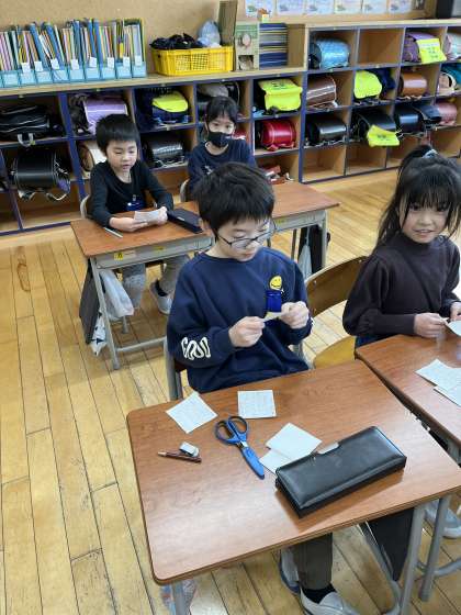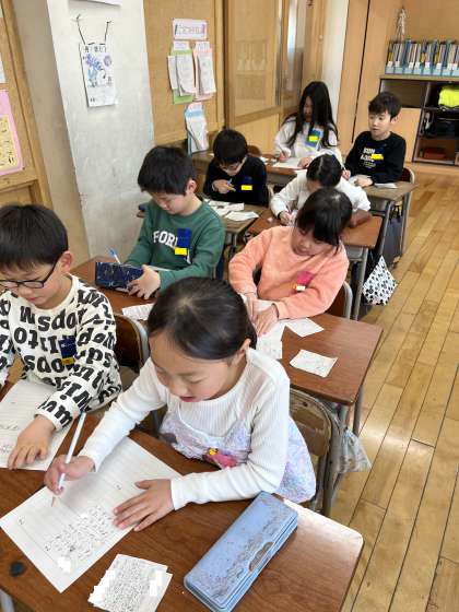 国語科では、2年間同じクラスで過ごした友達に、素敵なところを伝える手紙を書きました。子供たちは、自分の素敵なところを書いてもらった手紙をたくさんもらい、にこにこしながら読んでいました。