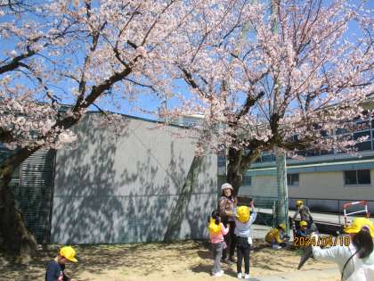 外へ出て春見付けをし、自分の見付けた「春」を友達に紹介しました。