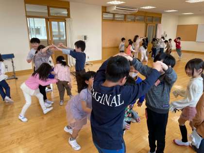 学年で歌ったり、心を合わせてリズムに合わせて手拍子したりし、音楽を楽しみました。